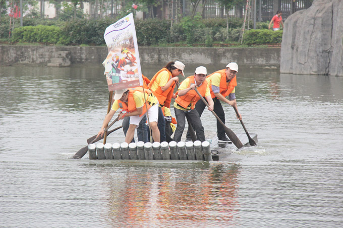 乘車到達農莊后,活動的第一項內容是隊列訓練,全體人員統一著裝,聽從教練口令,立正、稍息、向右看齊,動作一致,隊列整齊劃一,個個精神抖擻。隊列訓練結束后,是闖關奪冠比賽,79人被分為5個小分隊,每隊成員積極發揮聰明才智,隊長集思廣益,為本隊征集隊名和Logo,并在隊旗上描繪出具有本隊特色的動員口號。每支小分隊發有一張地圖,起點不同,但都需闖過五大難關,每一關都規定隊員必須先完成指定任務,再回答十個問題,用時最少,回答問題準確率最高的一隊為勝。這五大難關分別是:祥龍獻寶,瑞龍戲珠,猛龍吐珠,潛龍轟天,碧水龍舟。比賽過程中,青年員工們熱情高漲,目標明確,充分發揮團隊協作精神,爭分奪秒完成各項任務。這是屬于我們青年人的舞臺,恣意揮灑著青春,布滿汗水的笑臉在陽光下熠熠生輝。經過緊張激烈的比拼后,最終第一小分隊奪得最后的冠軍,歡呼祝賀聲響成一片。