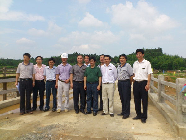 在施工現場,廖副廳長認真察看了各施工段的施工生產情況,詢問在施工過程中存在的困難和問題。廖副廳長對于太和鎮防洪工程項目的工程進展、工程質量給予了充分肯定,他指出:一是要切實把握好工程進度與工程質量的平衡點,切實抓好質量、安全等各個環節;二是要根據現場察看的情況要求業主、設計加強規劃,優化設計;三是要切實加強工程質量控制,確保工程質量,并注重工程外觀質量,力爭把南豐縣太和鎮防洪工程打造成中小河流治理的一個亮點。