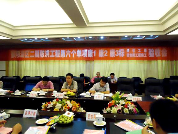 參加驗收會的單位有:省河湖局、上饒市城防處、省水利規劃設計院、余干縣水利局、余干縣建設項目部、上饒市水利水電建設工程監理中心、杭州慶達工程監理咨詢有限公司、省水利廳水利工程建設質量與安全監督中心站、楓富聯圩管理局、康山大堤管理局。我司副總經理胡鴻煌等代表公司參加了驗收會。