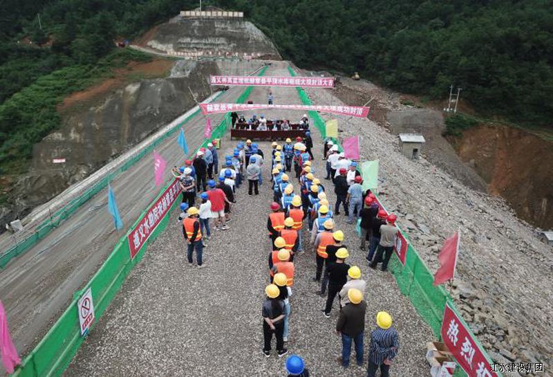 該工程是一座混凝土面板堆石壩,壩高47m,大壩填筑工程量42m3,大壩于2021年3月5日開始填筑,2021年6月30日填筑完成。大壩填筑完成后,得到了建設(shè)單位、監(jiān)理單位及總包單位的祝賀與肯定。該工程屬貴州省“鄉(xiāng)鄉(xiāng)有穩(wěn)定水源”項目,年供水量250.8萬m3,建成后可為安樂溪鄉(xiāng)集鎮(zhèn)及農(nóng)村20000余人提供安全穩(wěn)定供水和21670畝農(nóng)田灌溉用水以及將極大緩解當(dāng)?shù)厝彼桶踩嬎畣栴},意義重大。施工項目部將繼續(xù)堅持“科學(xué)管理、精心組織”理念,嚴(yán)格按設(shè)計和規(guī)范要求,在確保安全和質(zhì)量的前提下加快施工進(jìn)度,為安樂溪人民盡早提供安全水、干凈水及改善供水目標(biāo),確保在合同工期以內(nèi)按時、按質(zhì)、按量盡早建成交付建設(shè)單位投入使用。集團(tuán)副總裁胡鴻煌參加大壩封頂儀式。