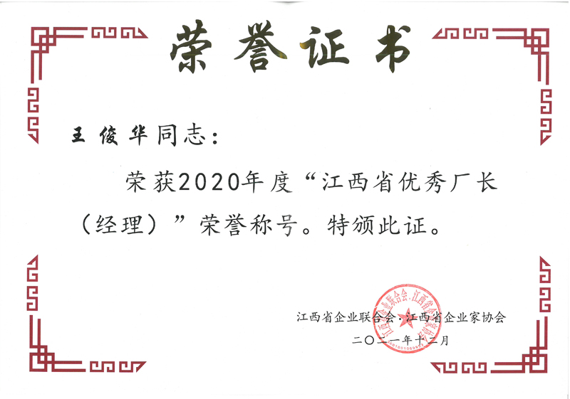 近日,江西省企業(yè)聯(lián)合會、江西省企業(yè)家協(xié)文件《關(guān)于表彰“2020年度新時代江西杰出企業(yè)家、江西省優(yōu)秀企業(yè)、江西省優(yōu)秀企業(yè)家、江西省優(yōu)秀廠長(經(jīng)理)”的決定》公布了2020年度江西省優(yōu)秀企業(yè)等獎項的評選結(jié)果。集團獲評江西省優(yōu)秀企業(yè);集團董事長王元旦獲評新時代江西杰出企業(yè)家;集團常務(wù)副總裁王俊華獲評江西省優(yōu)秀廠長(經(jīng)理)。至此,集團已連續(xù)二十二年被評為“江西省優(yōu)秀企業(yè)”。榮譽是一種肯定,更是一種責(zé)任,集團將以此為動力,新的一年再接再厲,繼續(xù)以優(yōu)秀水利龍頭企業(yè)的標準嚴格要求自己,不斷超越自我,開創(chuàng)企業(yè)發(fā)展多元化新格局,持續(xù)提高市場競爭力和社會影響力。