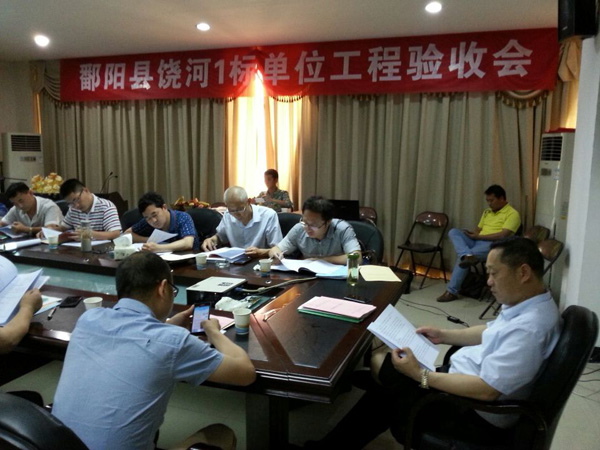 2015年5月28日,江西省鄱陽(yáng)湖區(qū)二期防洪工程第六個(gè)單項(xiàng)工程建設(shè)項(xiàng)目部在鄱陽(yáng)縣主持召開(kāi)了江西省鄱陽(yáng)湖區(qū)二期防洪工程第六個(gè)單項(xiàng)饒河聯(lián)圩除險(xiǎn)加固工程饒河1標(biāo)單位工程暨合同工程完工驗(yàn)收會(huì)議。驗(yàn)收工作組由業(yè)主、設(shè)計(jì)、施工、監(jiān)理、運(yùn)行管理等單位的代表組成。
