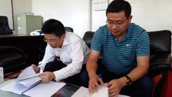 2015年7月8日, 肯尼亞分公司總經理賀翔,在污水處理項目唐志兵經理的陪同下,與業主南維多利亞湖水利委員會簽訂了在建污水項目的增項合同。增項工程工期為6個月,至今年年底結束,主要包含兩個熟化池,數公里管線,數個公共廁所,以及兩條進場路等。具體合同條款參照原合同執行。此次增項合同的簽訂標志著我司在建污水項目得到了業主單位的肯定,表達了業主方愿意與我司長期合作的意向,為今后公司在肯尼亞西部市場的開發奠定了更扎實的基礎。