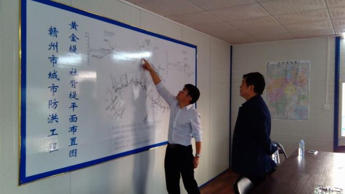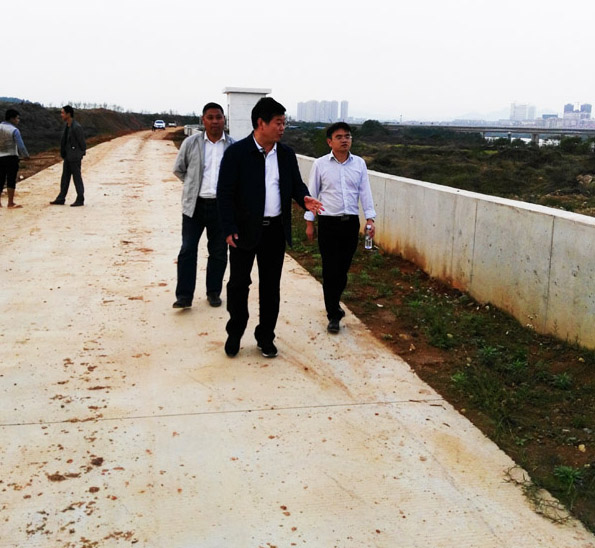 2015年11月20日下午,公司董事長王元旦一行到贛州城防項目檢查指導工作。