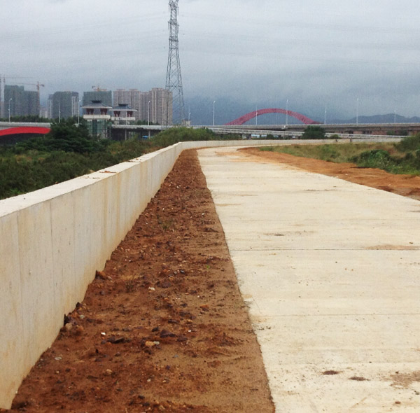 澆筑好的堤頂公路、防浪墻