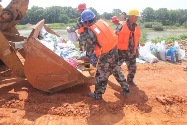 機械倒運防洪物資