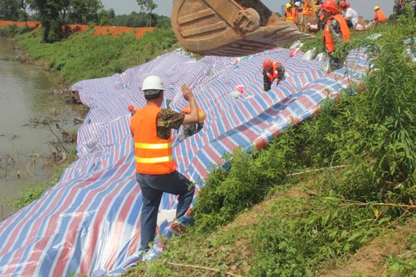 迎水面鋪設防沖彩條布