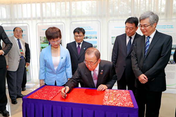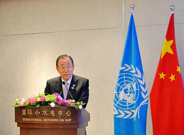 7月9日上午,聯(lián)合國(guó)秘書長(zhǎng)潘基文出席了由聯(lián)合國(guó)開(kāi)發(fā)計(jì)劃署、聯(lián)合國(guó)工發(fā)組織、國(guó)際小水電中心共同舉辦的“應(yīng)對(duì)氣候變化南南合作主題會(huì)”,并發(fā)表重要講話,會(huì)議在國(guó)際小水電中心舉行。聯(lián)合國(guó)副秘書長(zhǎng)吳紅波、中國(guó)駐聯(lián)合國(guó)代表劉結(jié)一大使等陪同出席。