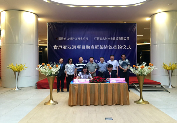 隨后,肯尼亞雙河項目融資框架協議簽約儀式在雙河商場隆重舉行,公司董事長王元旦與中國進出口銀行江西省分行行長鄭麗簽訂了關于肯尼亞雙河項目融資框架協議。該協議的簽訂,充分表明我公司投資并參建的雙河項目引入戰略投資工作取得了實質性進展,并為公司加快投融資、實施走出去戰略奠定了堅實的基礎,標志著我公司的海外事業又邁上了一個新臺階。