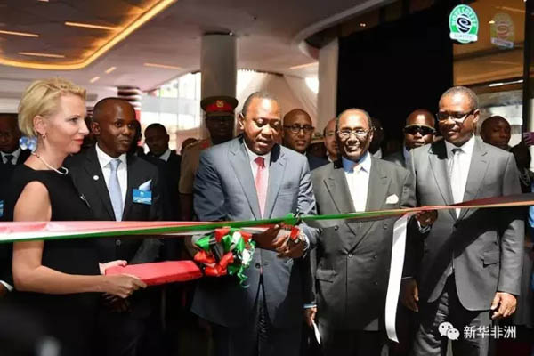 肯尼亞總統肯雅塔(前排中)為雙河商城正式開業剪彩