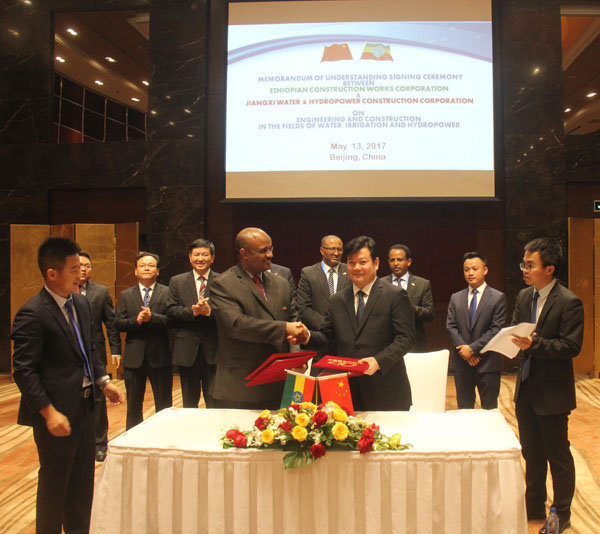 5月13日,在“一帶一路”國(guó)際合作高峰論壇分會(huì)場(chǎng)北京千禧大酒店,在埃塞俄比亞國(guó)防部、外交部、工業(yè)部、建設(shè)部等六位部長(zhǎng)的見證下,公司與埃塞俄比亞建設(shè)集團(tuán)簽署全面戰(zhàn)略合作協(xié)議,雙方將在水電站、農(nóng)田灌溉、城市供水、污水處理等工程建設(shè)領(lǐng)域深化合作。根據(jù)協(xié)議內(nèi)容,公司將成為埃塞俄比亞水利工程建設(shè)領(lǐng)域的優(yōu)先合作伙伴。