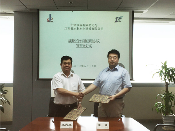 2017年5月15日,江西省水利水電建設有限公司與中鋼設備有限公司戰略合作框架協議簽約儀式在北京舉行。公司董事長王元旦與中鋼設備有限公司總經理王建代表雙方簽署了戰略合作框架協議。公司海外公司副總經理熊昊冠和中鋼設備能源與基礎設施部副部長閆永軍、國際市場部副部長王思奇、市場主管姬曉軍參加簽字儀式。王建表示中鋼公司有著海外平臺優勢,江西水建擁有水利水電、房建和市政領域的技術優勢,希望雙方以此次戰略合作簽署為契機,借助各自在資源、業務等方面的綜合優勢,在巴基斯坦市場以及其他國別市場攜手共進,推進重點項目落地,共謀發展。公司董事長王元旦對中鋼設備的支持表示感謝。他表示此次合作將會是一個友好的開端,真誠希望雙方在國家“一帶一路”戰略指引下進一步加深交流,探索多方位、深層次合作,實現互利共贏。