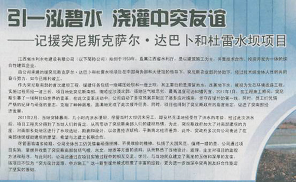 由公司承建的援突尼斯克薩爾?達(dá)巴卜和杜雷水壩項(xiàng)目在中國商務(wù)部和大使館的領(lǐng)導(dǎo)下、突尼斯農(nóng)業(yè)部的協(xié)助下,經(jīng)過技術(shù)組全體人員的共同奮斗努力,如今已順利竣工。
