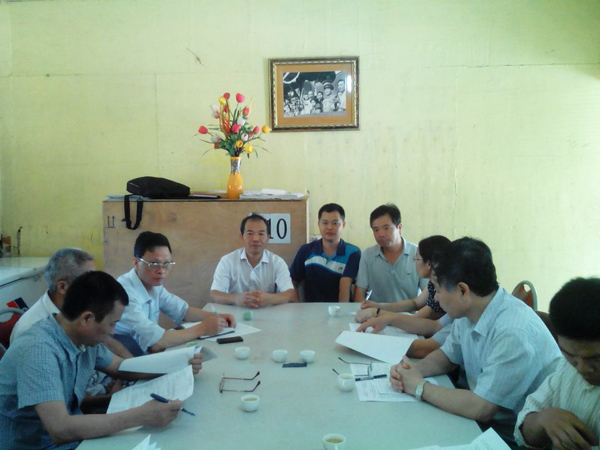 越南分公司負(fù)責(zé)人鄒春明、項(xiàng)目經(jīng)理夏愛(ài)民向阮玉平董事長(zhǎng)介紹施工情況