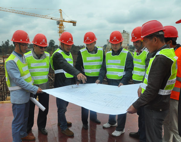 2014年8月8號(hào),公司董事長王元旦、總會(huì)計(jì)師王義生,副總經(jīng)理張周平、黃鄭民一行抵達(dá)肯尼亞,開始了為期一周的巡視指導(dǎo)工作。剛下飛機(jī),董事長王元旦一行便馬不停蹄地趕往位于肯尼亞首都內(nèi)羅畢的雙河房地產(chǎn)項(xiàng)目一期、二期工地進(jìn)行視察。