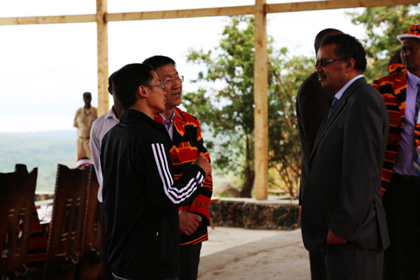 公司副總經理王俊華對使館領導不辭辛苦來到施工現場看望一線員工表示感謝,并就我公司在埃塞俄比亞的發展情況向覃參贊作了介紹。他表示,江西水建作為中資企業的一員,一直服從使館領導統一指揮,以高品質的工程質量、過硬的施工技術,將一流的工程項目呈獻給埃塞人民。