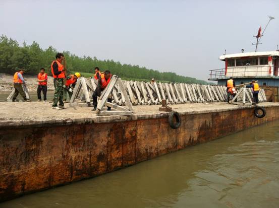 [注:九江長江江心洲固岸應急度汛工程,包括九江縣江新洲1標和彭澤縣棉船洲1標,由我公司中標承建。工程主要建設內容為拋石、砼四邊六面框架、干砌石護坡,項目總投資4000萬元。江新洲和棉船洲大堤共保護面積130.39 平方公里,保護耕地12.18萬畝,保護人口8.39萬人,圩區內土地肥沃,灌溉便利,是江西省的重要棉油生產基地。]