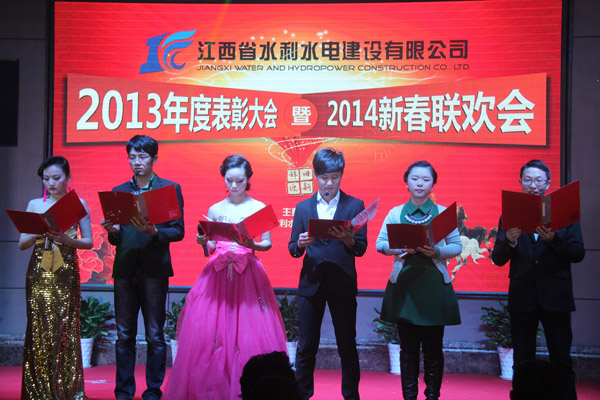 律回春暉漸,萬(wàn)象始更新。1月26日下午,在如詩(shī)如畫的贛江堤畔,江西省水利水電建設(shè)有限公司2013年度表彰大會(huì)暨新春聯(lián)歡會(huì)在南昌市隆重舉行,來(lái)自公司總部、國(guó)內(nèi)外分公司、各專業(yè)公司、施工項(xiàng)目部的350多名管理人員及員工歡聚一堂,共賀新春。