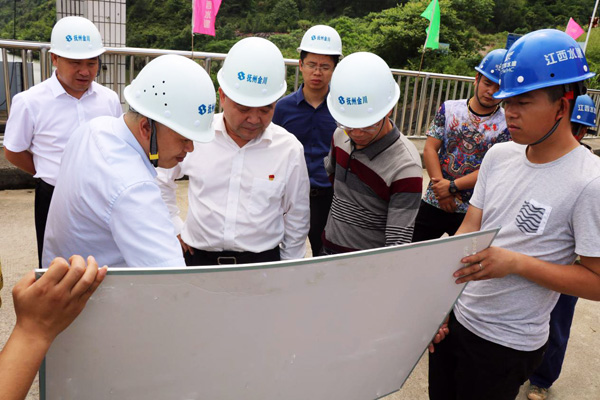 上饒市人大常委會副主任、鄱陽縣縣委書記張禎祥一行調研廖坊水利樞紐灌區二期工程