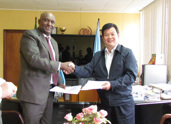 董事長(zhǎng)總經(jīng)理王元旦與埃塞尤卡公司總經(jīng)理abebe簽訂技術(shù)合作協(xié)議
