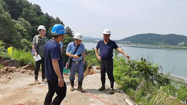 公司董事長王元旦到江西省峽江水利樞紐工程右岸壩肩邊坡滑坡體處理工程進行檢查指導工作