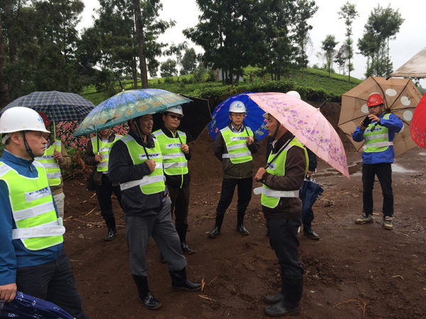 王董事長(zhǎng)冒雨在EPC項(xiàng)目施工現(xiàn)場(chǎng)視察